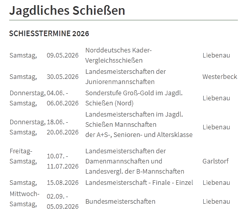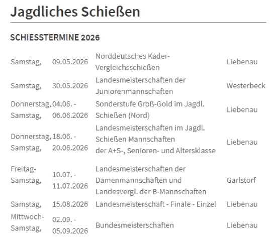 Termine auf Landes- und Bundesebene für das jagdliche Schießen