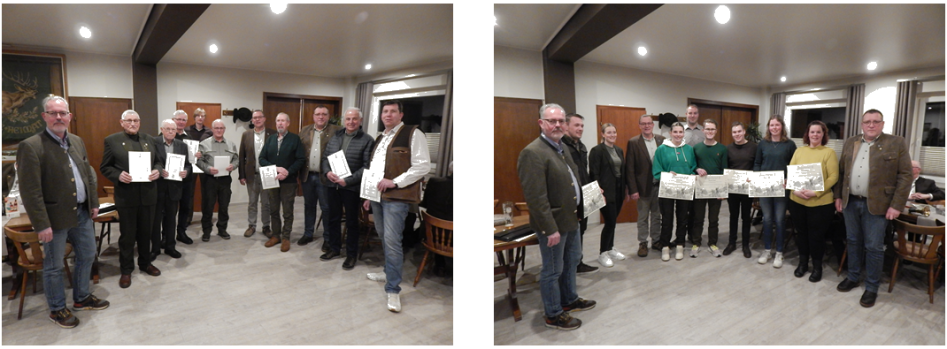 Mit rund 70 Anwesenden fand am 08.03.2024 im Festsaal der Gaststätte Drees die Mitgliederversammlung des Hegerings Haren (Ems) und des Vereins für jagdliches Schießen im Hegering Haren (Ems) statt. Hegeringsleiter Thomas Kassens eröffnete die Versammlung, es wurde zunächst der verstorbenen Mitglieder gedacht. Anschließend berichtete Kassens über die Ereignisse seit der letzten Versammlung und hob dabei insbesondere das Rehwildbewirtschaftungsseminar im Sommer 2023 sowie die revierübergreifende Baujagd im Februar 2024 hervor. Andreas Deuling, Stellvertretender Hegeringsleiter, erläuterte verschiedene rechtliche Änderungen, die seit der letzten Versammlung eingetreten bzw. in Zukunft zu erwarten sind. Deuling wies noch einmal auf den Schießnachweis "Schrot" hin, den Mitglieder unter anderem auch im Rahmen der jährlich auf dem Wurftaubenstand Dankern stattfindenden Hegeringsmeisterschaft erwerben können. Hubert Brandewiese, Vorsitzender der Jägerschaft Meppen, berichtete über Entwicklungen in der Landes- und Kreisjägerschaft. Bläserobmann Heinz Fischer zog für die Bläsergruppe Bilanz über das vergangene Jahr. Wolfgang Nilius berichtete über verschiedene Veranstaltungen auf dem Wurftaubenstand Dankern, unter anderem über die Hegeringsmeisterschaft und das Parcoursschießen im September 2023. Über die Kassenstände gab Johannes Deters Auskunft. Es folgten die Ehrungen für langjährige Mitgliedschaften in der Jägerschaft: Auf 60 Jahre Mitgliedschaft schaut Engelbert Lüppen sen. zurück. Jeweils 50 Jahre dabei sind Bernhard Borghorst, Wilhelm Lübbers und Bernd Müller. Seit 40 Jahren Mitglied sind Heribert König, Wilhelm Schütte und Heinz Vieler. Für 25 Jahre Mitgliedschaft wurden Clemens Bahns, Dieter Esders-Draxl und Engelbert Lüppen jun. geehrt. Neu in der Jägerschaft wurden begrüßt Maria Theresia Schütte, Johanna Schütte, Nina Stockhorst, Markus Bruns, Dominik Gerdes, Helga Nögel, Luka Wulfekuhl, Delia Draxl, Adrian Frye, Daniel Albers, Stephan Kötter und Ansgar Tengen. Der Vorstand wurde ohne Gegenstimmen entlastet. Zur Wahl standen die Positionen eines Stellvertretenden Hegeringsleiters sowie des Stellvertretenden Vorsitzenden des Vereins. Wolfgang Nilius wurde für beide Ämter ohne Gegenstimmen wiedergewählt. Turnusgemäß schied Franz Albers als Kassenprüfer aus, für ihn rückte Jan Dwersteg nach.
