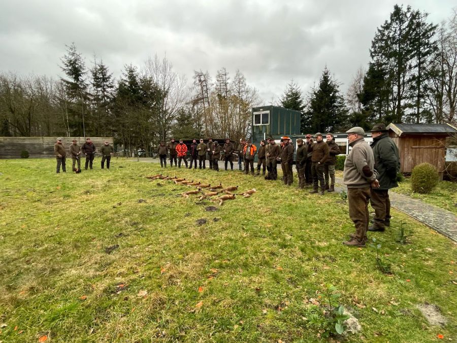 Nach dreijähriger Unterbrechung wurde am 03.02. wieder revierübergreifend auf Füchse gejagt. Neben den eigenen Bauhunden der Revierinhaber konnten erstmals Hunde über den Deutschen Teckelklub organisiert werden. Die Hunde haben hervorragende Arbeit geleistet, es kamen insgesamt 17 Füchse zur Strecke. Hegeringsleiter Thomas Kassens bedankte sich bei den Hundeführern und wies darauf hin, dass besonders in Niederwildrevieren die Prädatorenbejagung von großer Bedeutung ist. Nachdem die Brüche an die Erleger übergeben wurden, folgte ein gemütliches Beisammensein.