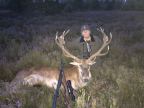 Seinen ersten Damhirsch konnte Maik Bolmer am 19.09.2016 auf der WTD 91 in Meppen erlegen. Nach ca. eineinhalbstündiger Pirsch konnte er dem Hirsch die Kugel vom Kaliber .308 aus der Merkel Helix Repetierbüchse antragen. Das Stück brach nach einer kurzen Flucht von etwa 30 m zusammen. Das Geweihgewicht beträgt 2,3 Kg.