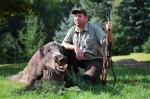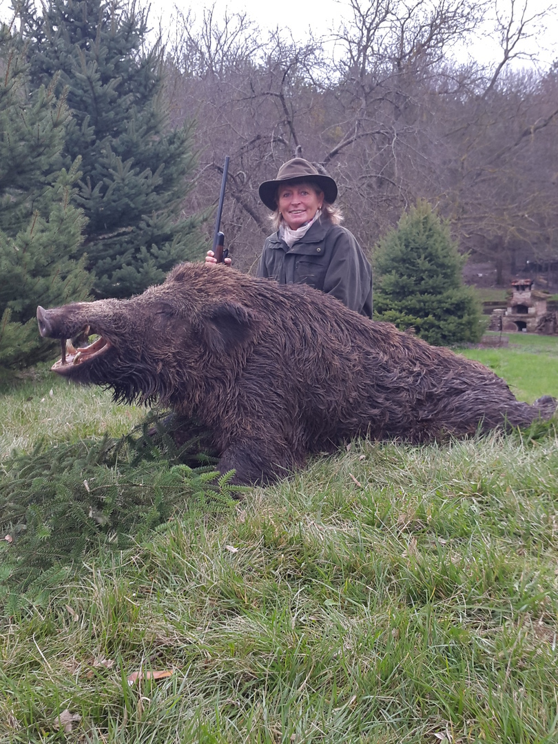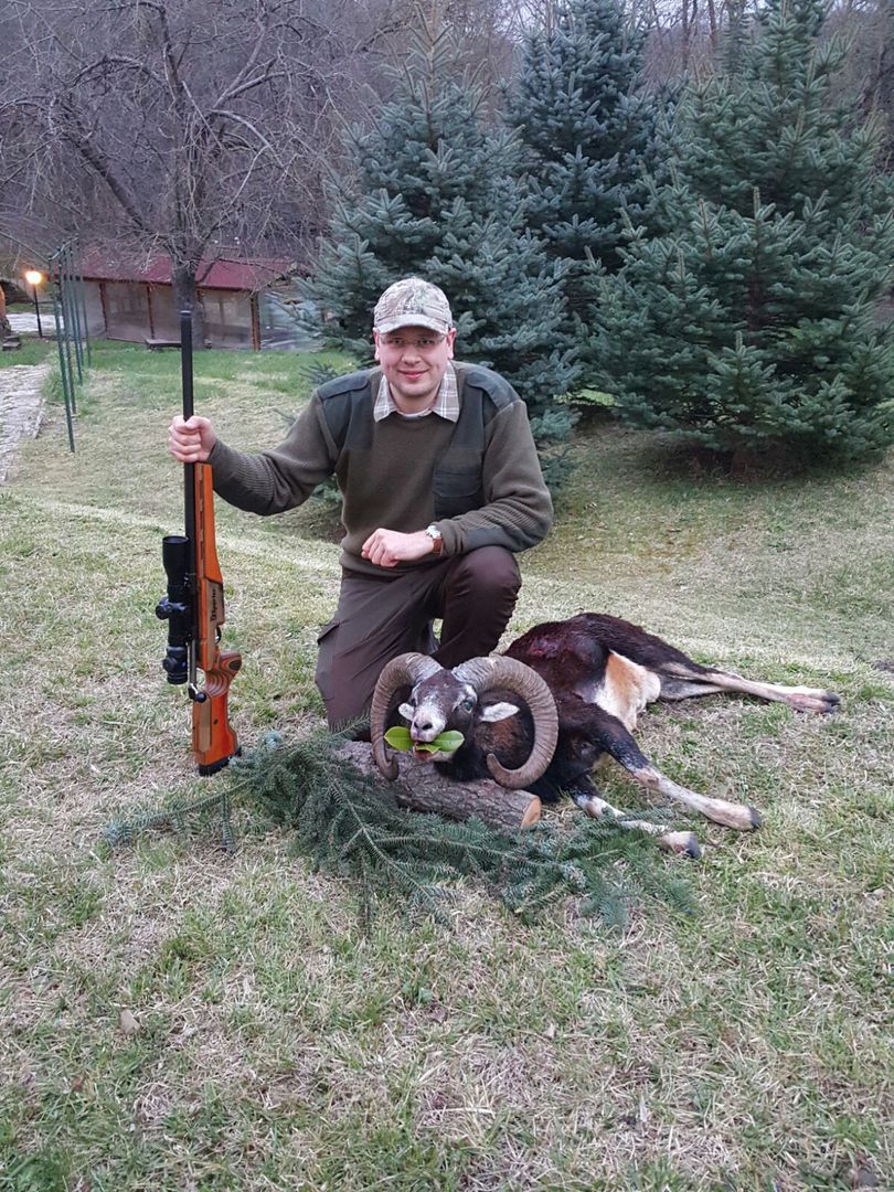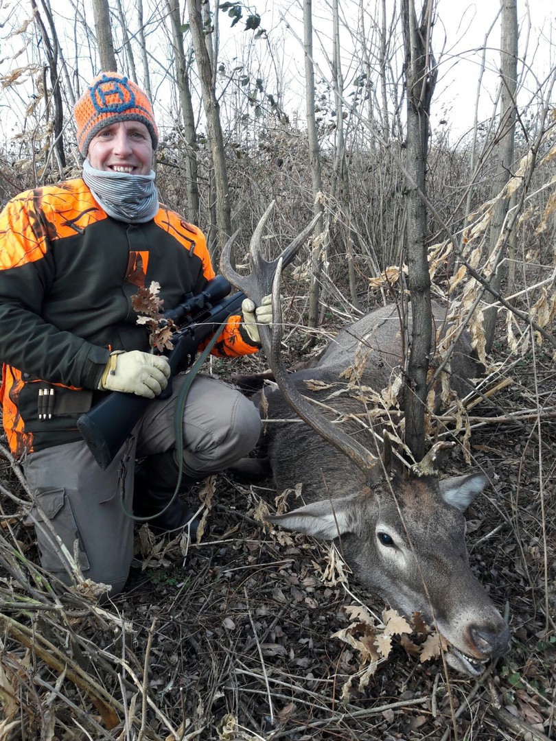 Jungjäger Markus Hasch konnte seinem ersten Rothirsch während einer Drückjagd in den Revieren Nagyatád und Lábod in Ungarn am 05.01.2017 die Kugel des Kalibers .308 antragen. Der Hirsch, den Markus auf eine Distanz von etwa 70 Meter erlegen konnte, stellt mit seinem abnormen Geweih, das auf der ausgebildeten Seite sogar eine Krone trägt, nicht nur für einen Jungjäger eine ganz besondere Trophäe dar, womit Markus am Ende des Jagdtages auch zum Hirschkönig gekrönt wurde. Am vorherigen Jagdtag konnte Markus mit einem Alttier bereits sein allererstes Stück Rotwild erlegen.
