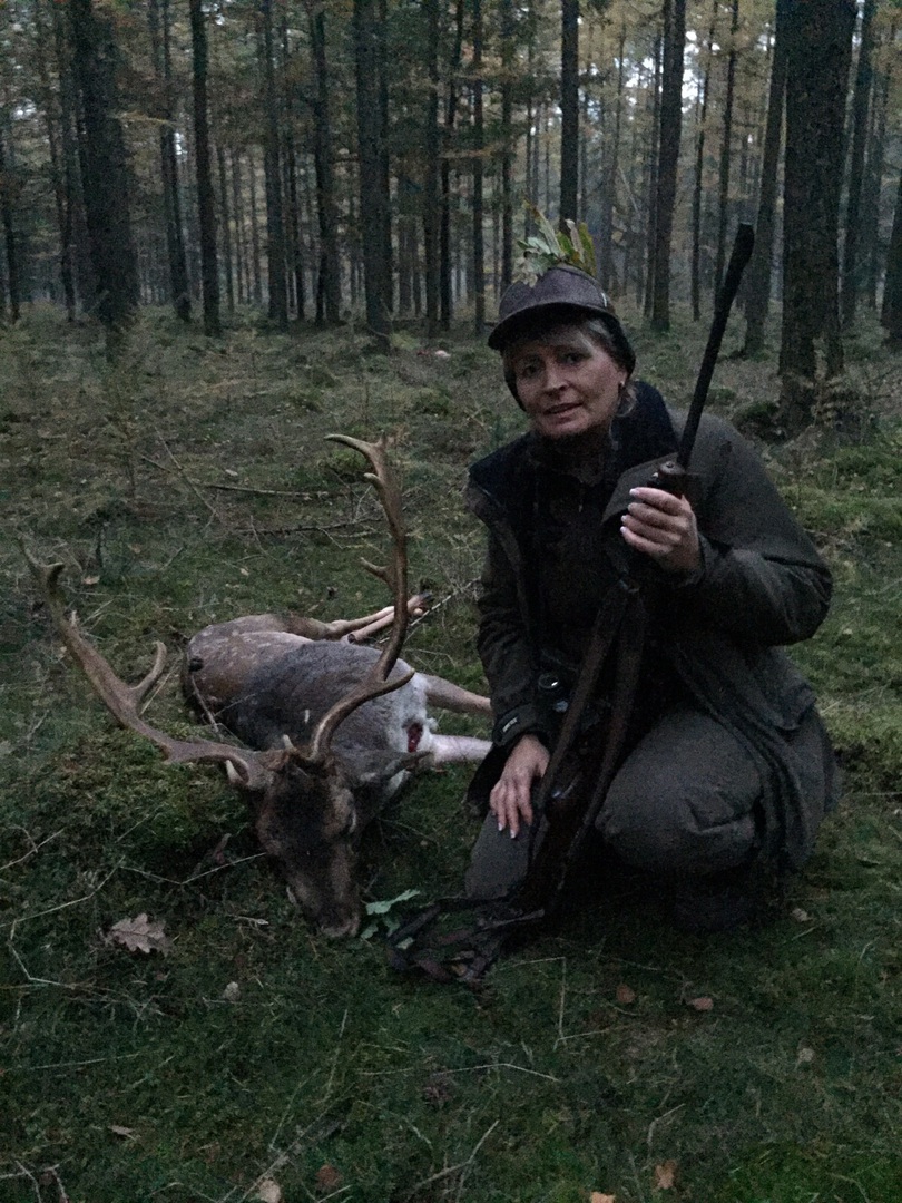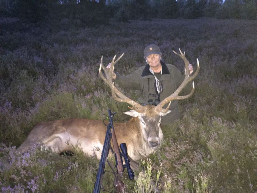 Ihren ersten Rothirsch erlegte Bettina Draxl am 14.09.2017 im Bundesforst Neubrandenburg (Liegenschaft Wittstock) auf einer frühabendlichen Pirsch. Bettina konnte dem Hirschen während der Brunft die Kugel des Kalibers .30-06 antragen. Der ungerade Vierzehnender stand im zwölften Kopf und erhielt bei der Trophäenbewertung nach CIC mit über 190 Punkten und einem Geweihgewicht von 7,7 KG die Silbermedaille. Die erfolgreiche Jagd in einer reizvollen Umgebung stellt für Bettina ein unvergessliches Erlebnis dar. Besonders in Erinnerung bleibt dabei auch die Begegnung mit einem Wolfsrudel, das während des Aufbrechens das Geschehen aus verhältnismäßig geringer Entfernung verfolgte.