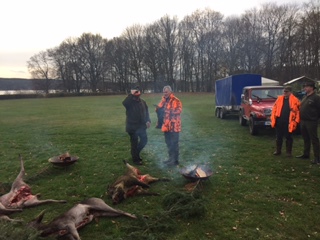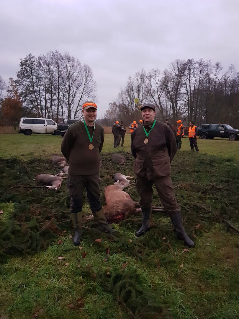 Bei einer Drückjagd in Zmigrod (Polen) vom 08. bis zum 11.11.2017, an der neben Dieter Esders-Draxl und Johannes Deters noch drei Jäger aus Dänemark, eine Jägerin und zwei Jäger aus Schweden sowie ein weiterer deutscher Jäger aus Buchholz teilnahmen, erhielten Dieter und Johannes den Titel König bzw. Vize-König. Dieter erlegte neben zwei Rothirschen noch eine Sau sowie ein Damtier und ein Damkalb. Johannes trug einen Rothirschen und vier Sauen zur Strecke bei. Bei neun Jägern betrug die Gesamtstrecke 28 Kreaturen.