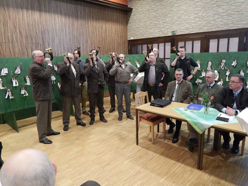Jagdhornbläser während der Hegeringsversammlung am 09.03.2018