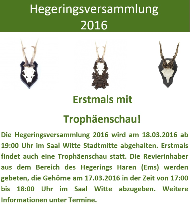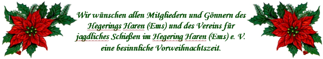 Der Hegering Haren (Ems) gehört zur Jägerschaft Meppen und liegt im Westen Niedersachsens im Landkreis Emsland an der niederländischen Grenze. Unsere Aufgaben und Ziele sind die Förderung des Jagdwesens und der Brauchtumspflege auf lokaler Ebene. Der Verein für jagdliches Schießen im Hegering Haren (Ems) e. V. ist Betreiber des Wurftaubenstands Dankern. Jäger können die Schießanlage zur Übung im jagdlichen Schießen nutzen. Darüber hinaus steht der Tontaubenstand auch für Gäste zur Verfügung, die unter Aufsicht und fachlicher Anleitung mit der Flinte schießen wollen. Der Verein ist gemeinnützig (Förderung des Sports). Mit den Schwarzpulverschützen verfügt der Verein zudem über eine interessante Sparte, die Tradition und modernes Sportschützentum miteinander verbindet. Wir wünschen Ihnen viel Spaß auf unseren Seiten.