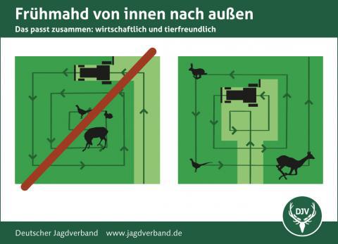 Die Frühmahd von Grünland steht an. Um Wildtiere vor dem Kreiselmäher zu retten, sollte von innen nach außen gemäht werden. Durch verschiedene Maßnahmen können Wildtiere vor dem Mähtod gerettet werden. Wichtige Informationen finden Sie hier.